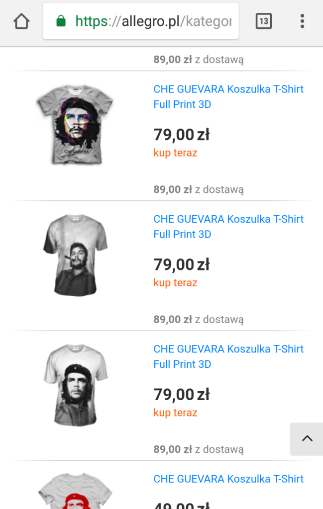 Czerwona gwiazda, sierp z młotem, czy Che Guevera zdaniem Allegro nie są najwidoczniej „symbolami propagującymi totalitarny ustrój państwa”. W przeciwieństwie do koszulek oddających cześć bohaterowi, który ustrój totalitarny zwalczał.
