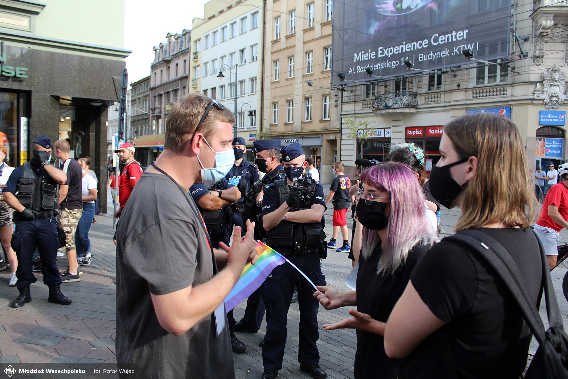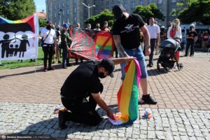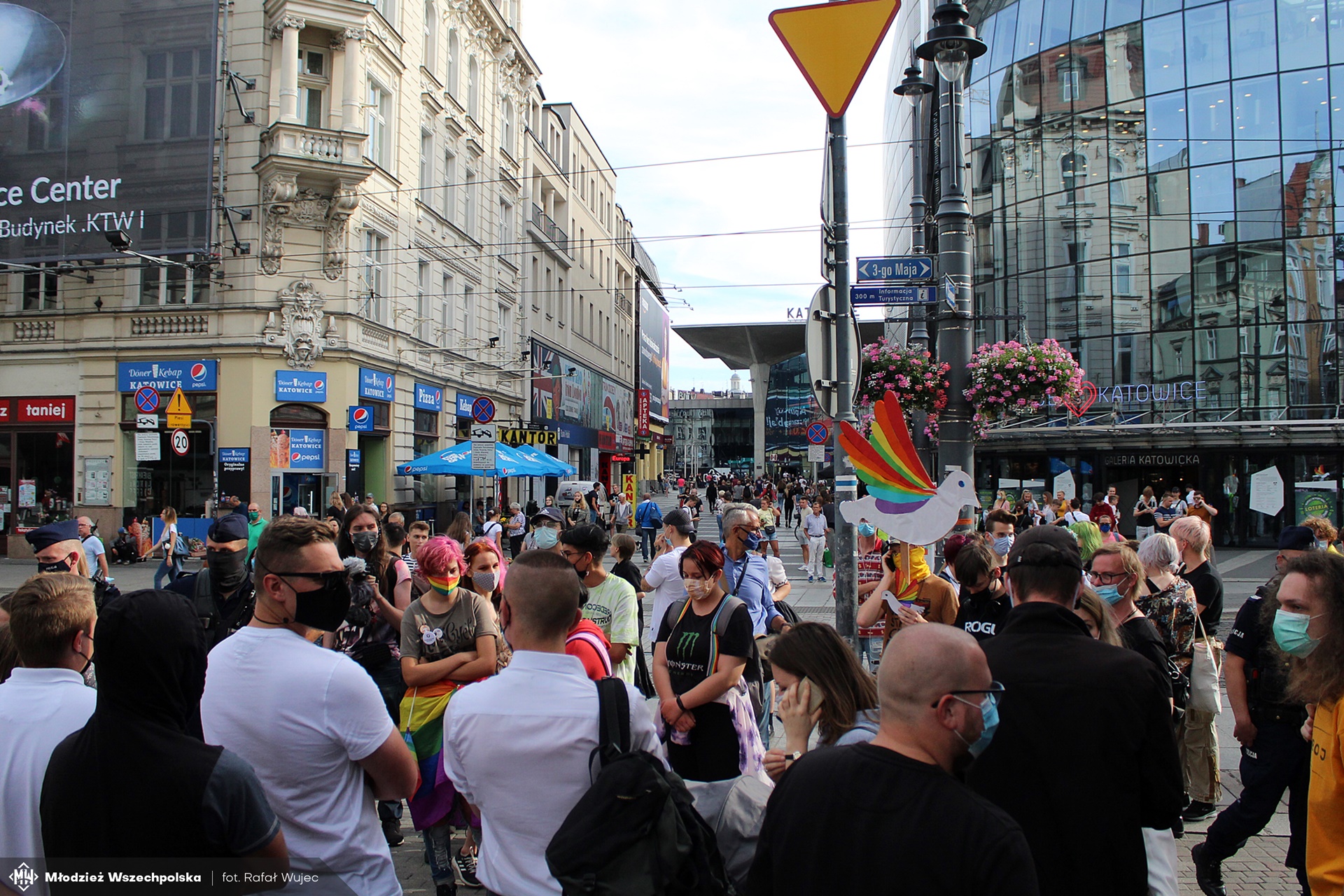 Wczoraj (05.09) działacze Okręgu Śląskiego MW wzięli udział w zgromadzeniu aby wyrazić swój sprzeciw wobec katowickiego marszu równości. Na miejscu, oprócz działaczy Młodzieży Wszechpolskiej, pojawili się przedstawiciele różnych środowisk zjednoczonych wokół sprzeciwu wobec ideologii LGBT, m. in. kibice, narodowcy, grupa Defend Poland i działacze Pro-Life. Pomimo tego że Marsz Równości tym razem bardzo szybko opuścił miejsce swojego zgromadzenia, pikieta środowisk patriotycznych i konserwatywnych się odbyła. Miały na niej miejsce zaplanowane happeningi.