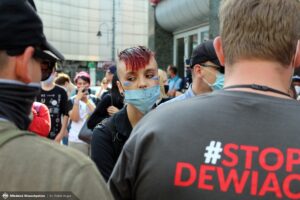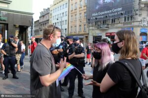 Kilka godzin później miało miejsce bulwersujące wydarzenie. Grupa osób z tęczowymi emblematami, prawdopodobnie wracająca z Marszu Równości, starała się utrudnić zbieranie podpisów pod projektem ustawy zakazującym organizowania obscenicznych parad w polskich miastach. Wszechpolacy wraz z grupą Defend Poland pojawili się na miejscu zajmując miejsce pomiędzy wspomnianą grupą a osobami zbierającymi podpisy rozdzielając obie strony i umożliwiając tym samym doprowadzenie zbiórki do końca.