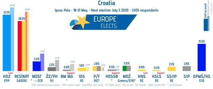 Według najnowszych sondaży, zarówno centro-prawicowa Chorwacka Unia Demokratyczna (HDZ) oraz lewicowo-liberalny „Restart” nie osiągnęłyby samodzielnej większości w parlamencie, co zmuszałoby do rządowej współpracy z narodowym DPMS.