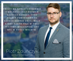 Piotr Zduńczyk: Myślę, ze program Konfederacji dobrze pokazuje ustępstwa na jakie musiały się zgodzić obie partie. Ruch Narodowy przeforsował między innymi emeryturę obywatelską, bon oświatowy, energetykę jądrową czy zagadnienia polityki zagranicznej oraz ochronę życia poczętego. Korwiniści skupili się na podatkach i deregulacji, warto zaznaczyć, że pod tym kątem Ruch Narodowy również stoi bliżej pozycji wolnościowych niż partie systemowe. Jednak boli trochę fakt, że nasi obecni sojusznicy w mediach prowadzą swoją, charakterystyczną dla korwinistów narrację, która nijak ma się do programu Konfederacji.